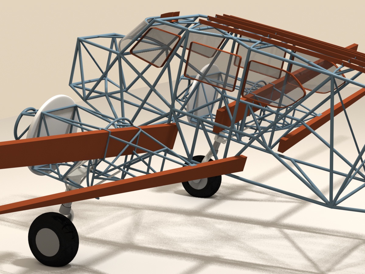 As I get the documentation, I'll adjust various things that are already done. In the following images, for example, I've reduced the tubing diameter to scale, and have almost finished the tubing that makes up the landing gear/engine mount part of the truss.