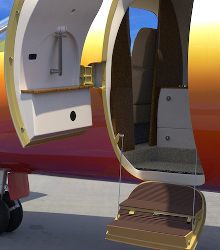 The typical real-world corporate-type paint for this aircraft is simple and elegant, consisting of the base white color, with three flowing stripes running the length of the fuselage and tail. That’s easy, but I wanted to create a more flashy, colorful scheme, as though I own the aircraft, and was having fun with it. So, I decided on a red/orange/yellow gradient-type color scheme for the fuselage, along with some stripes.