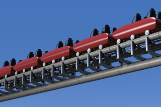 First, I removed the squarish=track supports, and substituted MODO's new "renderable curves". That helped a little. Another approach I'll try is simply reducing the length of the ride by about 1/3rd or so. Regardless, this is interesting, and here are the results so far.